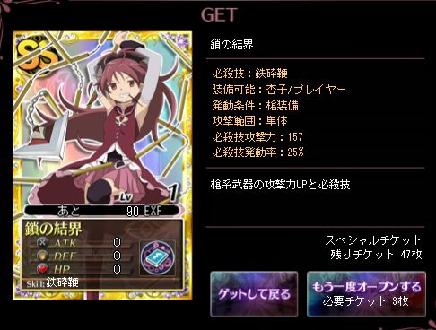 杏子ちゃんのSSスキル「鎖の結界」ゲット