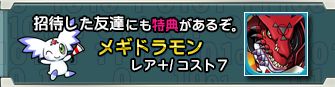 招待されると招待特典でメギドラモンR+が手に入るらしいので