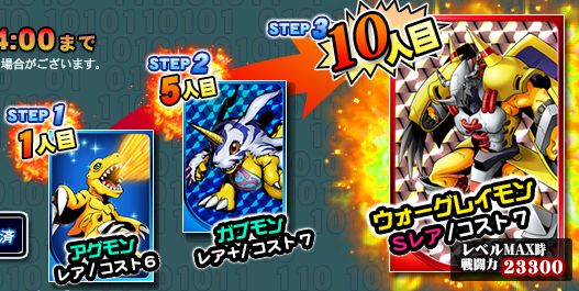 アグモン、ガブモン、ウォーグレイモンが貰えるみたいなんで
