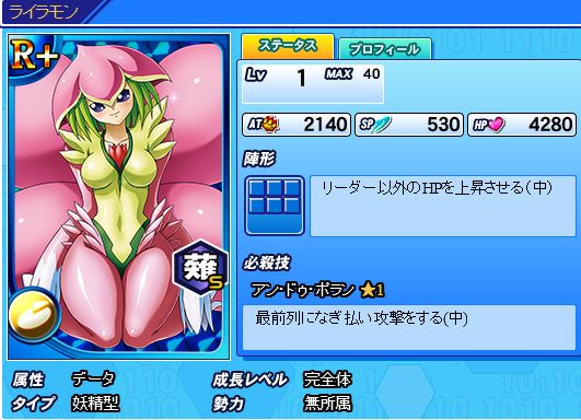 でもSRの2体やリーダー候補のライラモンとかを優先して育てるから