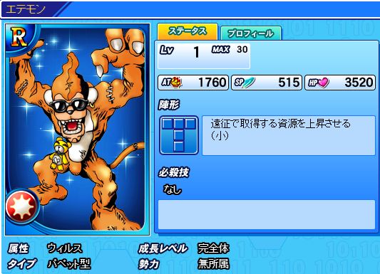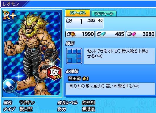 7枠陣形のデジモン手に入るまではこの子をリーダーにして進めようと思う