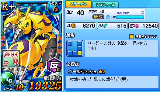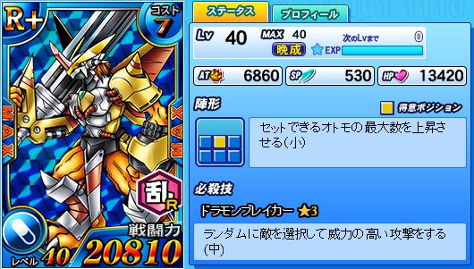 R+の方のビクトリーグレイモンだけど晩成のコスト7だけあって戦闘力2万越えだね