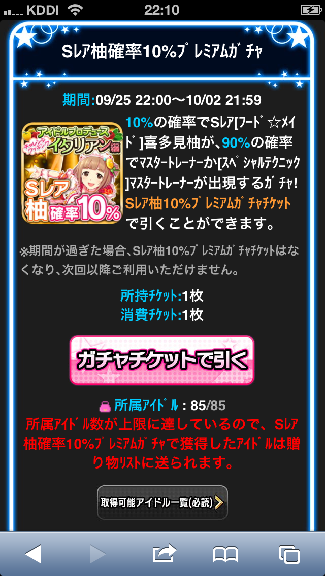 まずはイベントアイドルガチャとSR確定ガチャ回そう