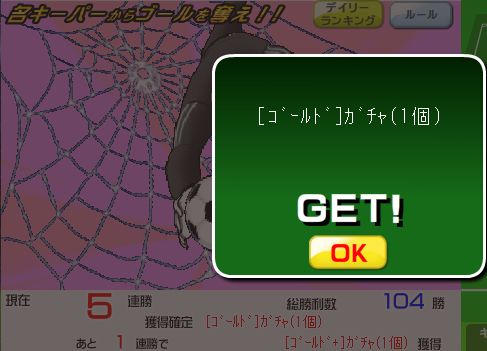 当たり前だけどG以上が5連勝以外無いだけどクモ男は一番止められてるからね・・・
