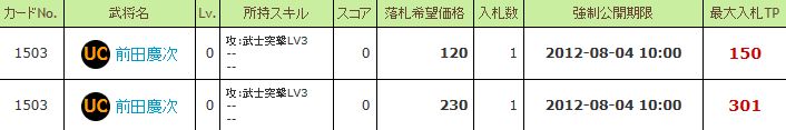 次ライトでUC前田慶次引いたら300で出品してみるかなww