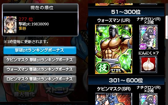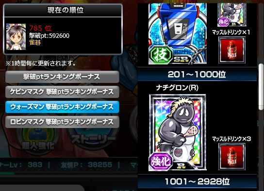 累計撃破ptランキングは何とか300位以内に滑り込めたのでURウォーズマンゲットですww