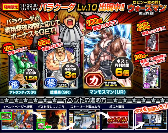 バラクーダ撃破数ボーナスのSR喧嘩男とURマンモスマンをゲットできたから結果的には上出来でしょww