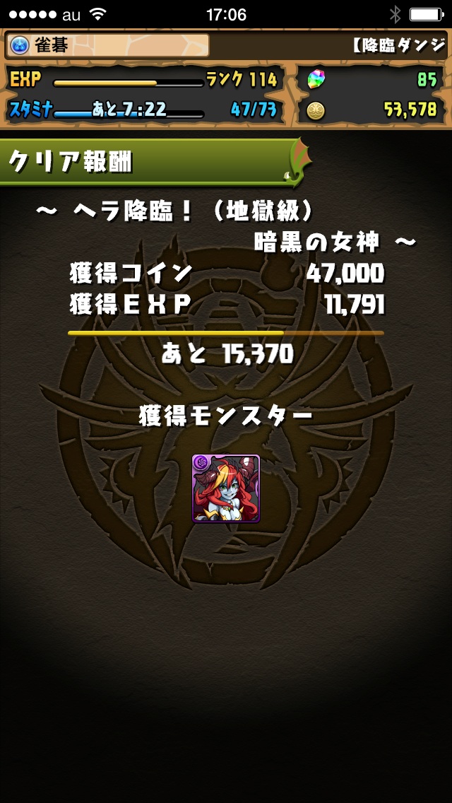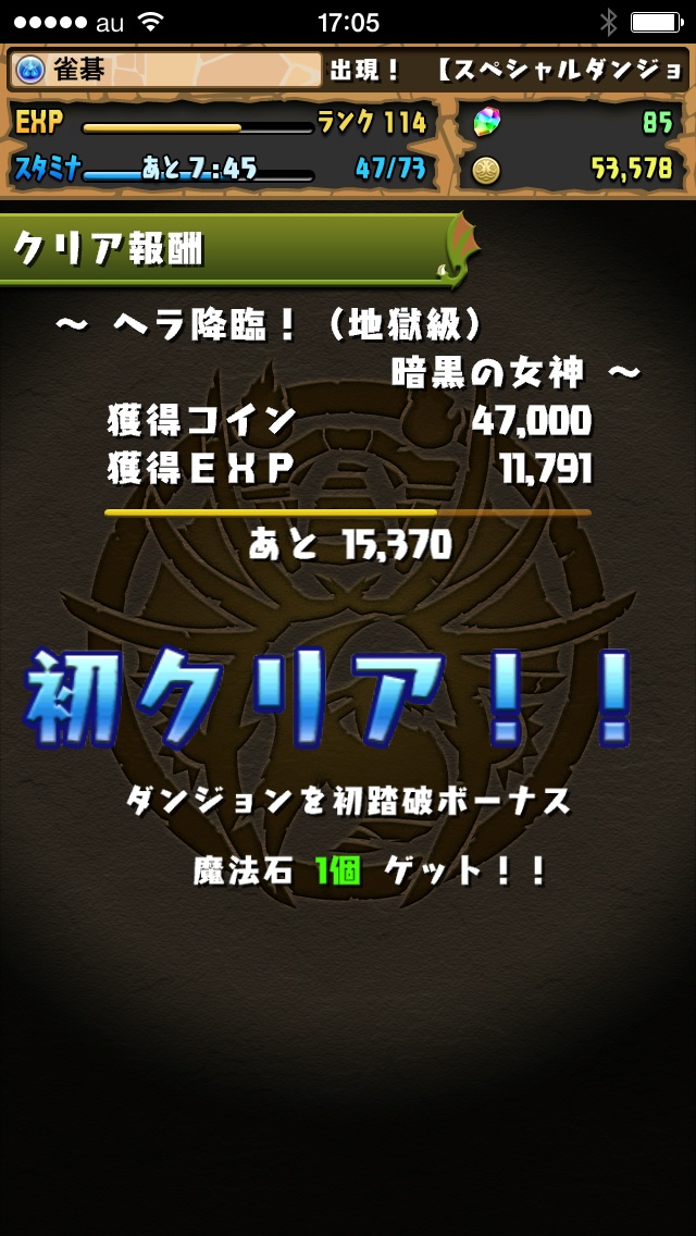ってことでヘラ降臨初クリア!!です