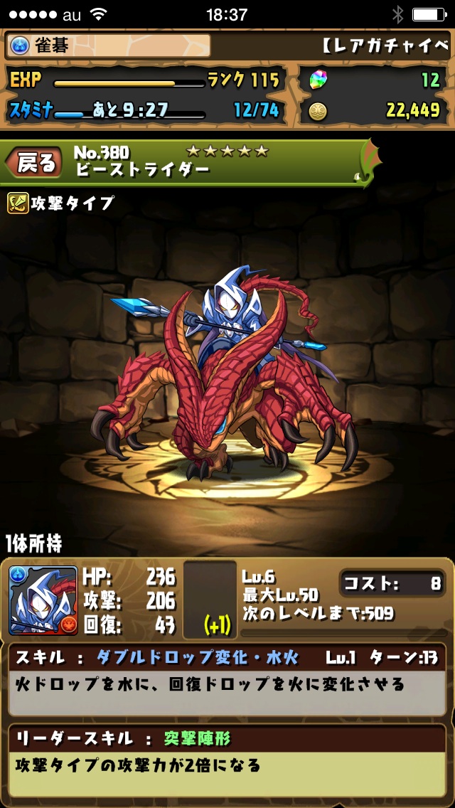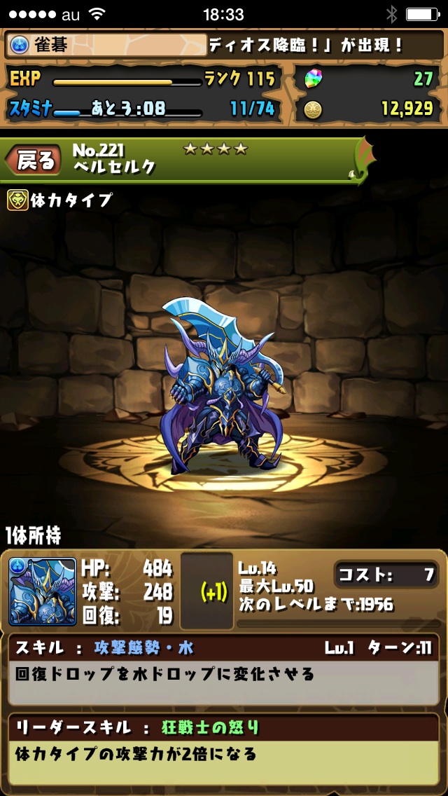 ベルセルクさん進化後が前回ダブったのにまた来るか・・・